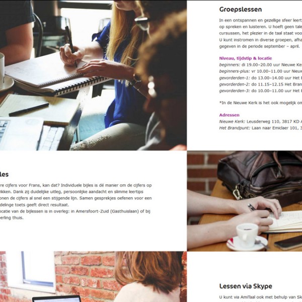 Bij AmiTaal kun je terecht voor groepslessen Frans, individuele lessen of bijlessen in de regio Amersfoort. Beppie vroeg ons om een logo te ontwerpen en een bijpassende WordPress-website te ontwikkelen.