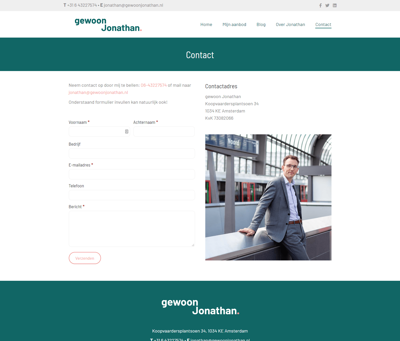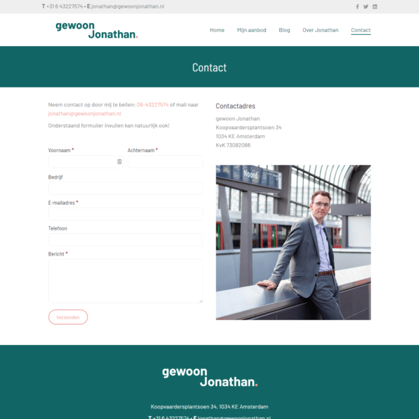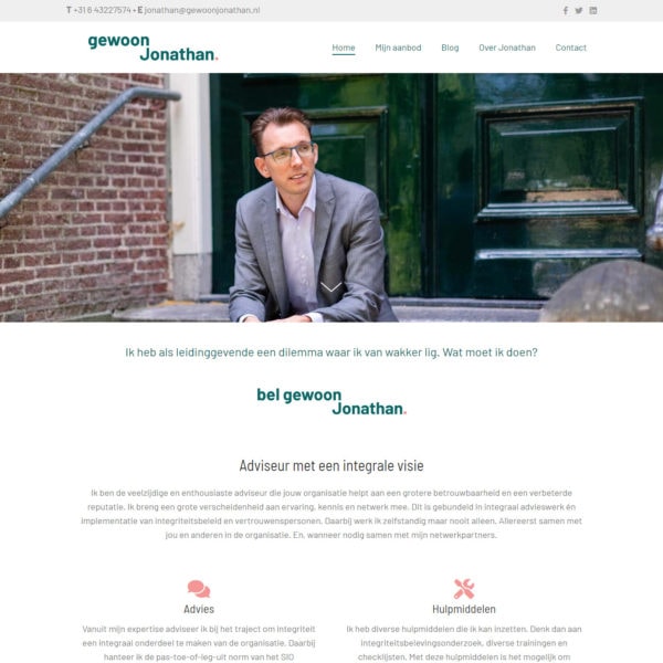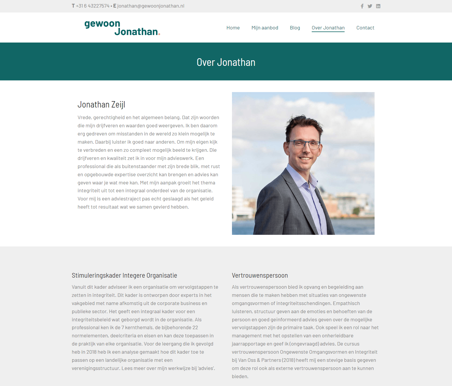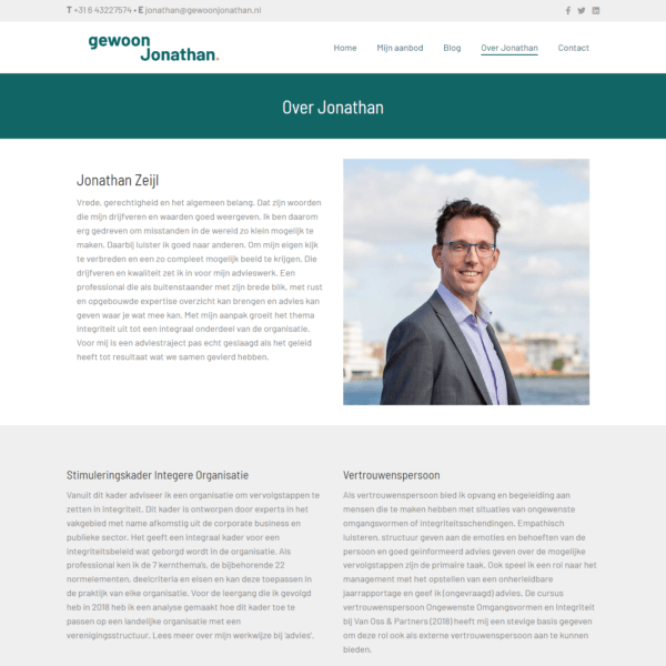 Voor Jonathan hebben we een website gebouwd voor zijn eigen bedrijf Gewoon Jonathan. Het resultaat is een strakke website die aansluit op zijn logo en huisstijl. Op de website is zijn aanbod te bekijken en zijn Jonathan’s blogs te lezen.
