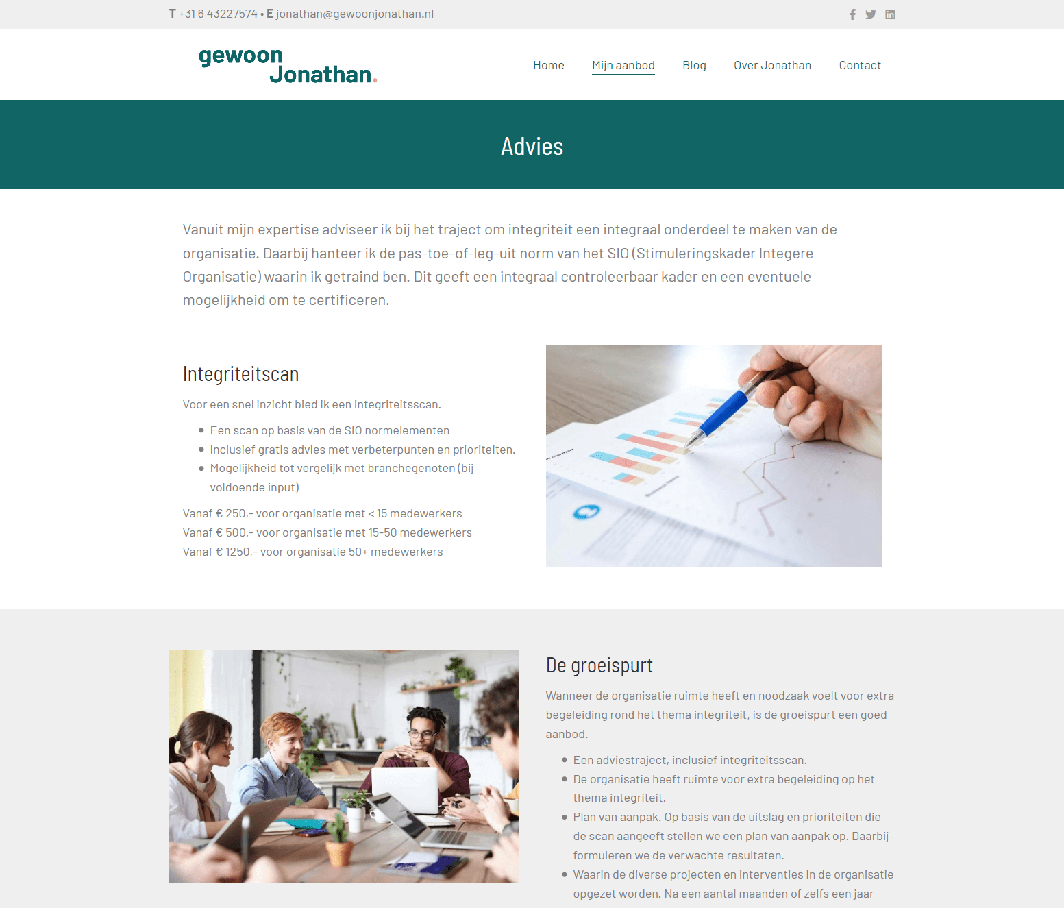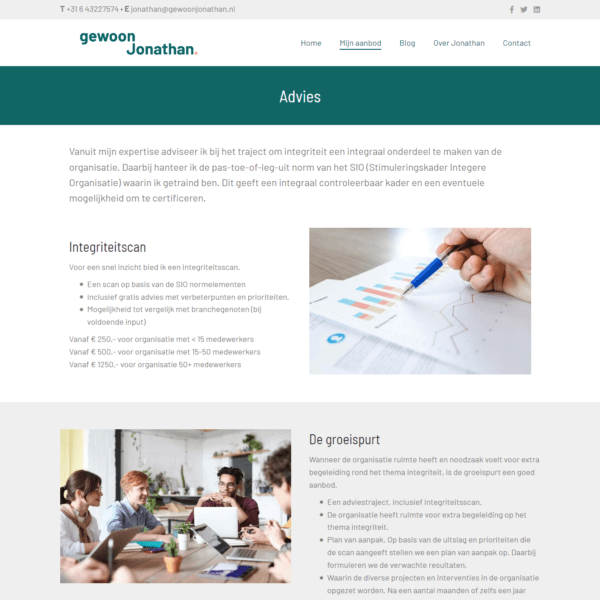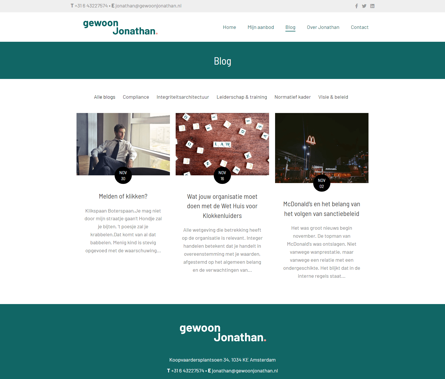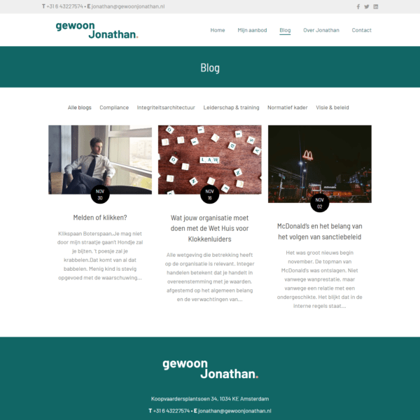 Voor Jonathan hebben we een website gebouwd voor zijn eigen bedrijf Gewoon Jonathan. Het resultaat is een strakke website die aansluit op zijn logo en huisstijl. Op de website is zijn aanbod te bekijken en zijn Jonathan’s blogs te lezen.