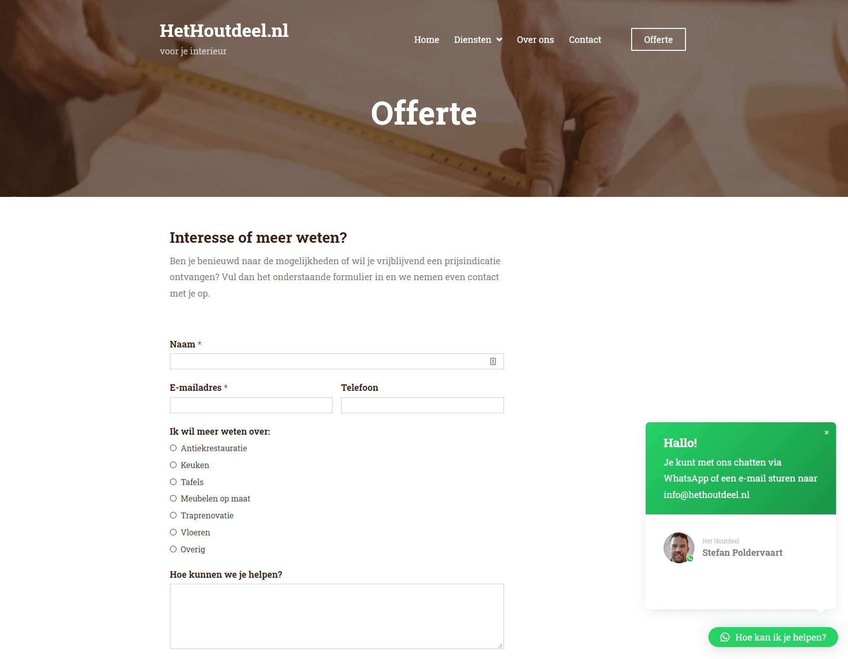 Stefan wilde een moderne website hebben met aandacht voor de verschillende diensten die hij aanbiedt op het gebied van houtbewerking en interieur. We hebben voor hem het design en de website gemaakt en teksten geschreven aan de hand van een interview. Stefan was erg blij met zijn nieuwe online visitekaartje.