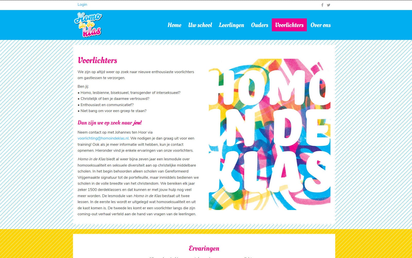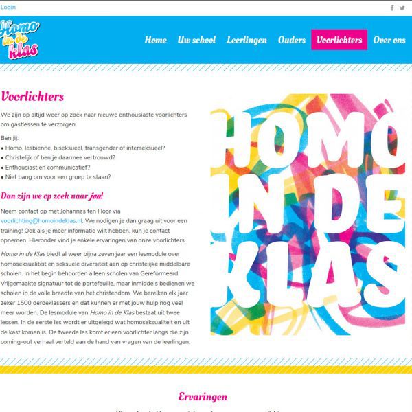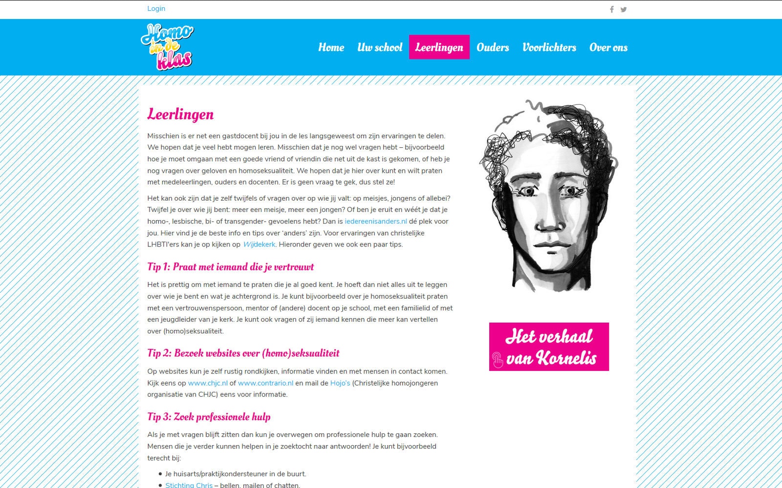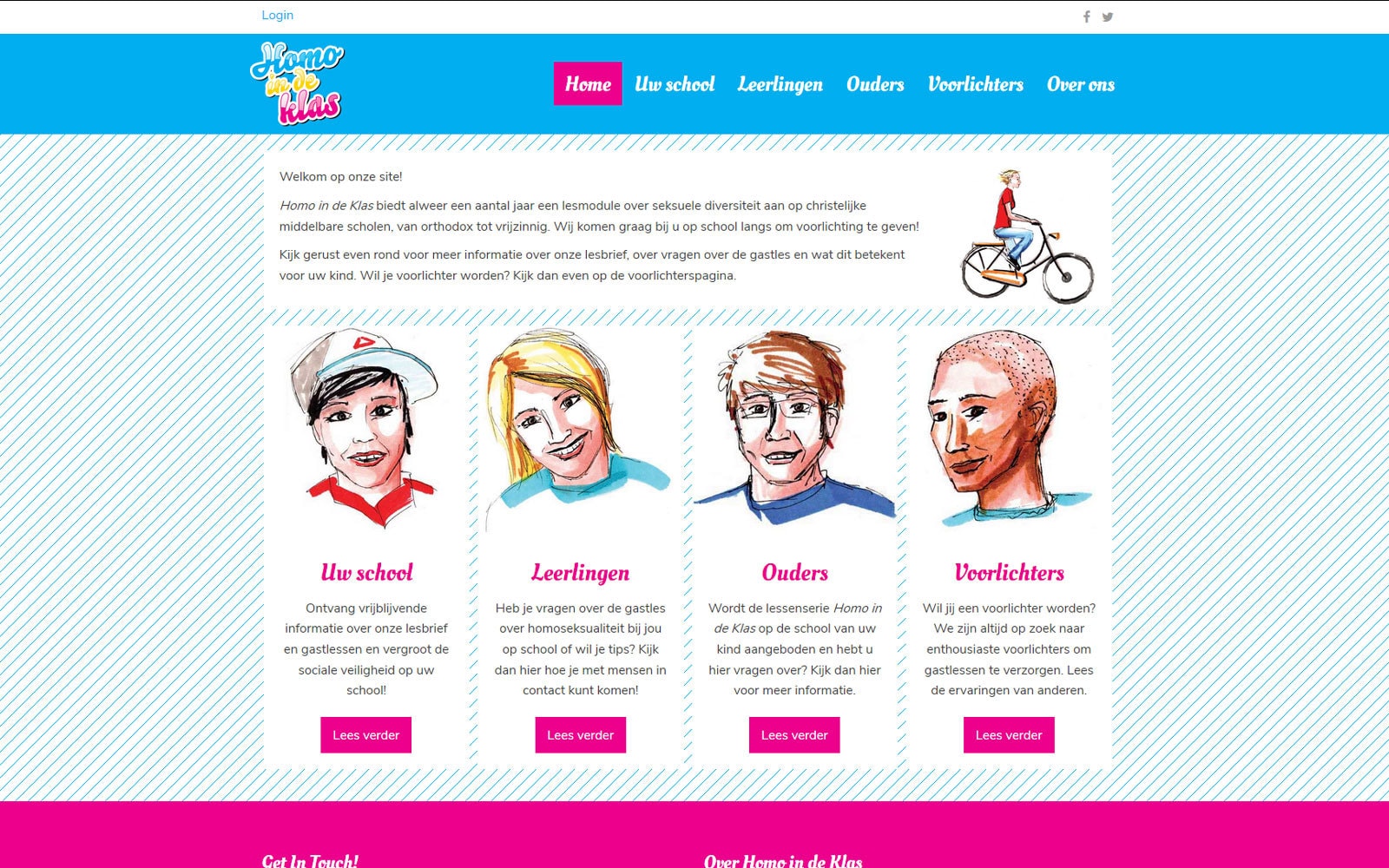 Voor Homo in de Klas hebben we een vernieuwde website gemaakt, die aansluit op de huisstijl die in hun lesmaterialen gebruikt wordt.