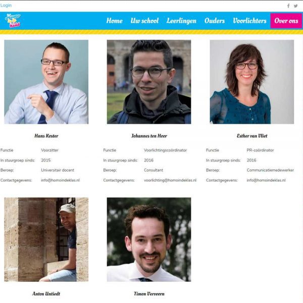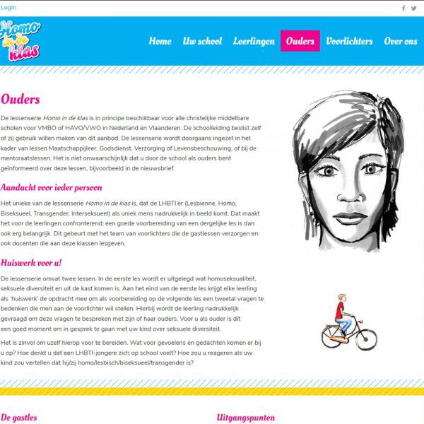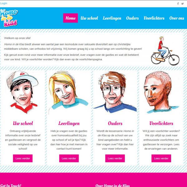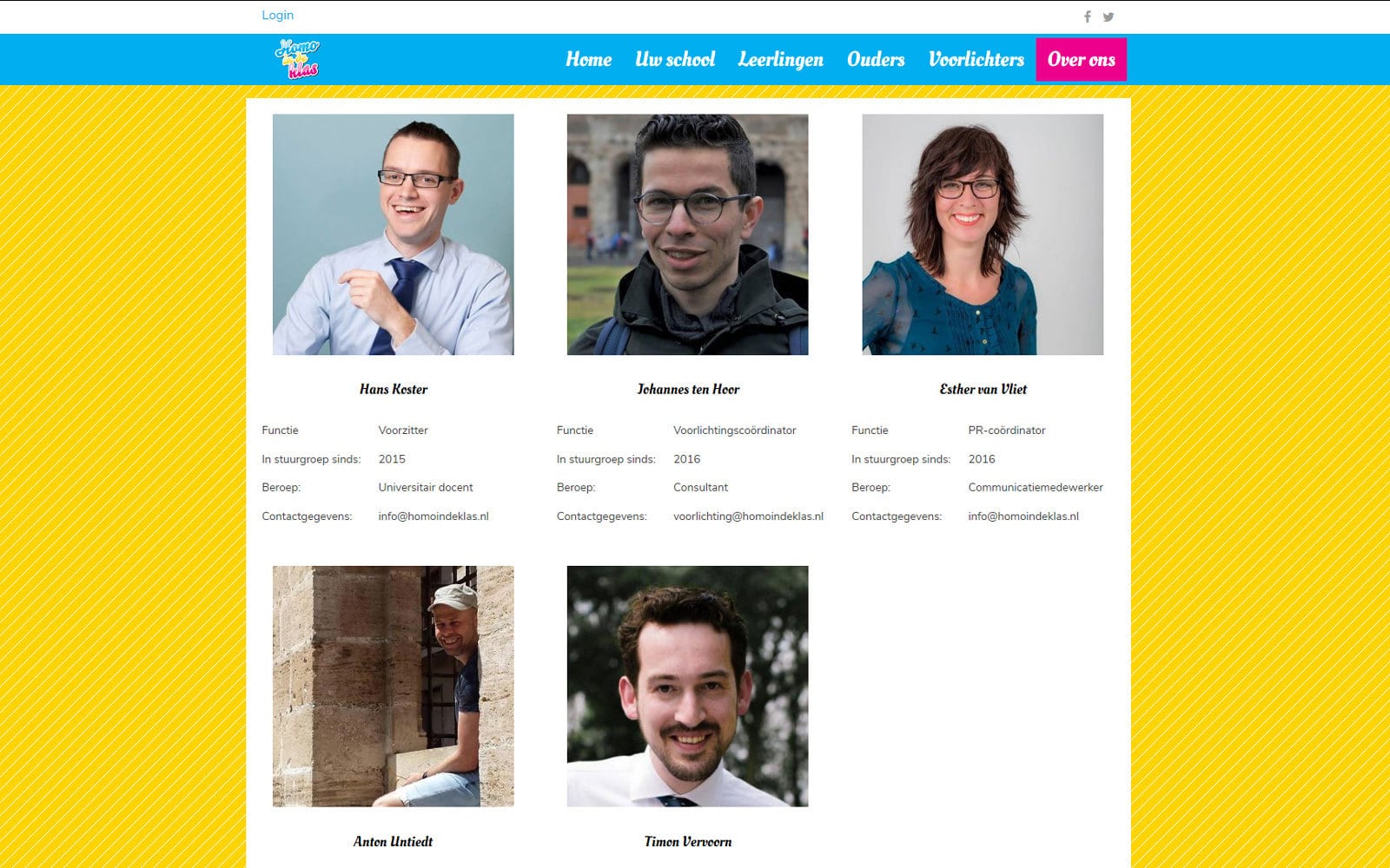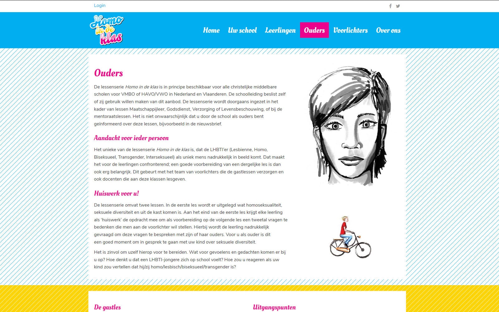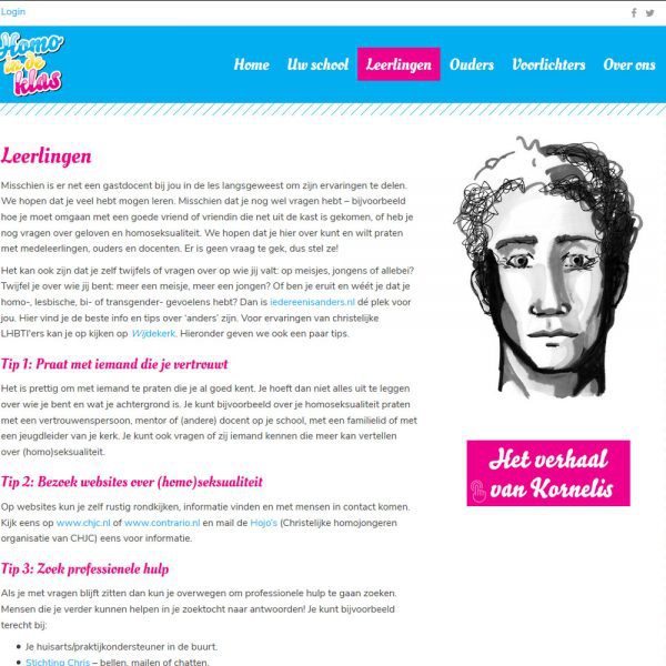 Voor Homo in de Klas hebben we een vernieuwde website gemaakt, die aansluit op de huisstijl die in hun lesmaterialen gebruikt wordt.