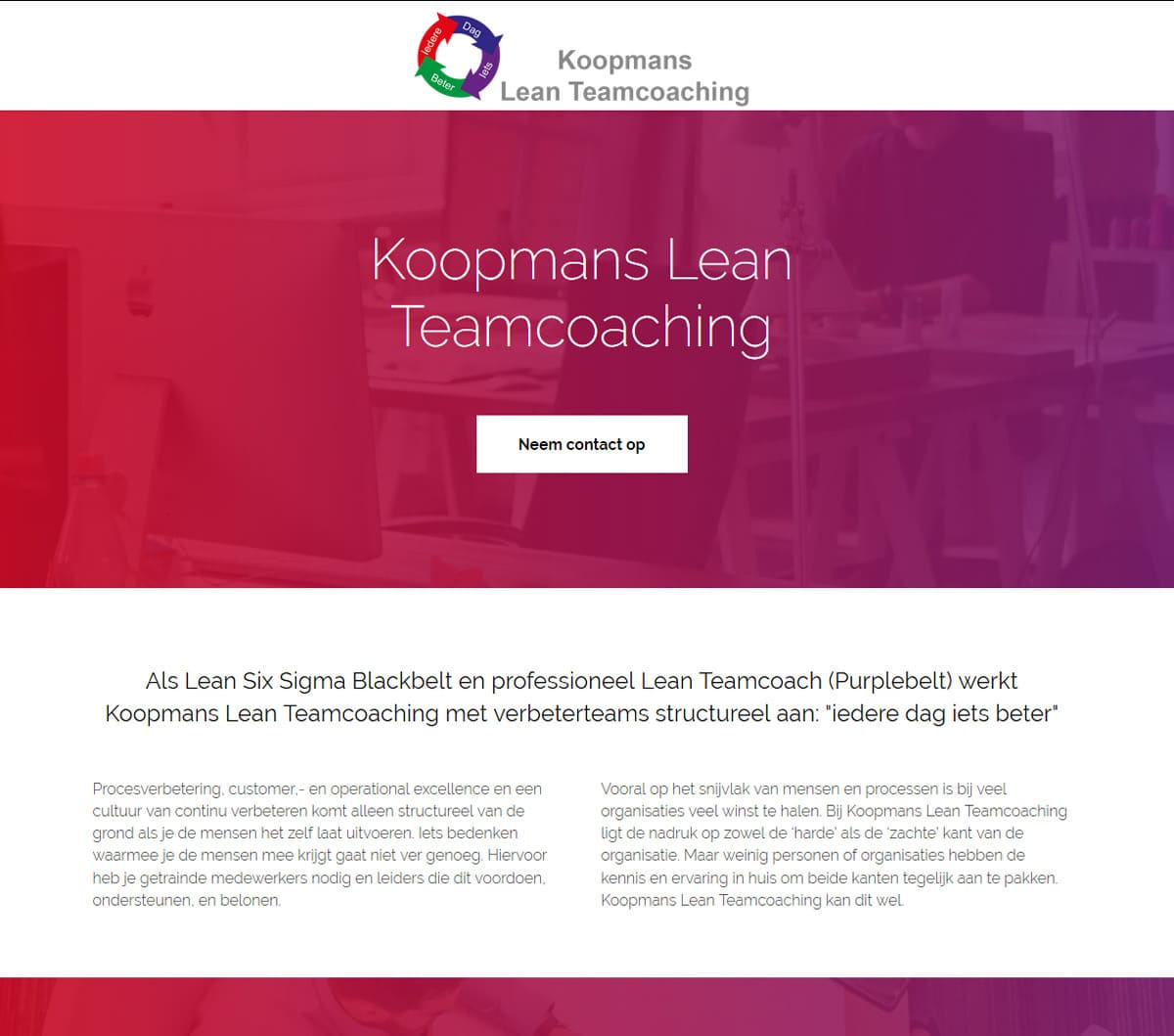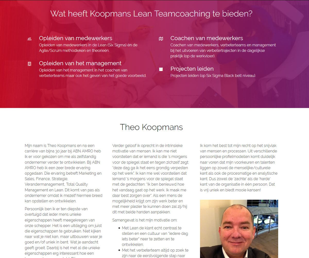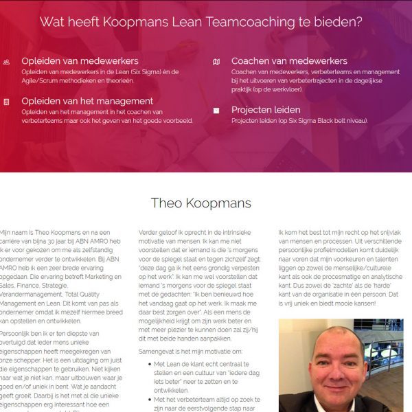 Als startende ondernemer was Theo Koopmans op zoek naar een simpele website, dat als visitekaartje kan dienen. Op termijn kan de website dan verder uitgebouwd worden.