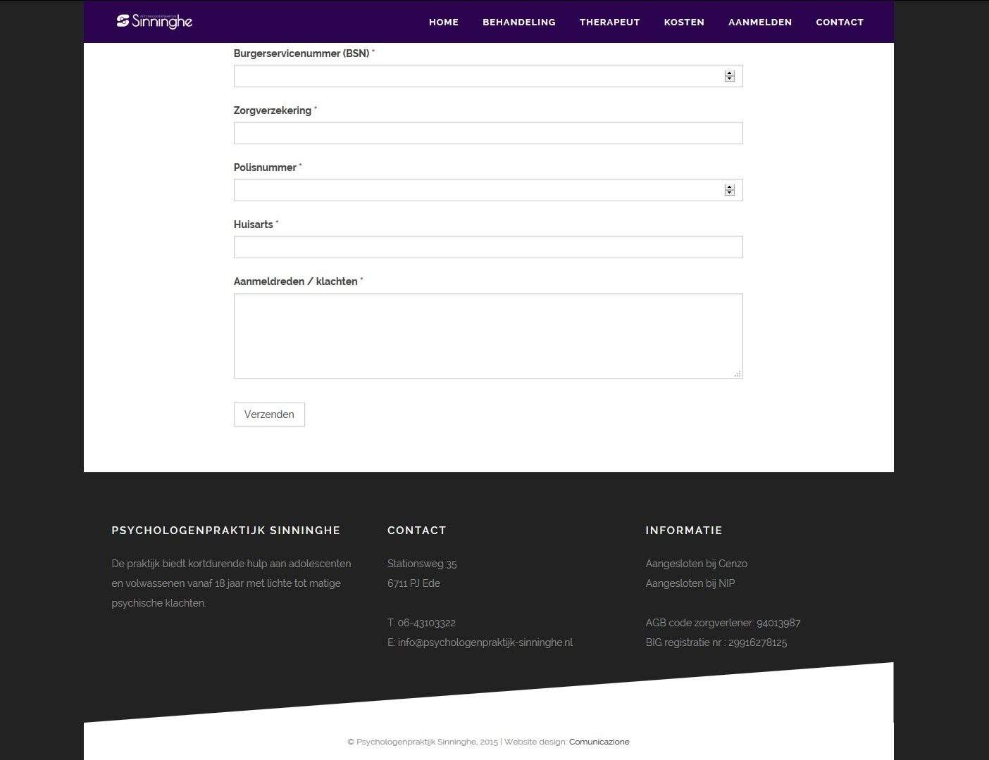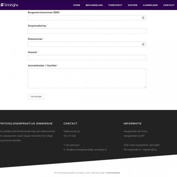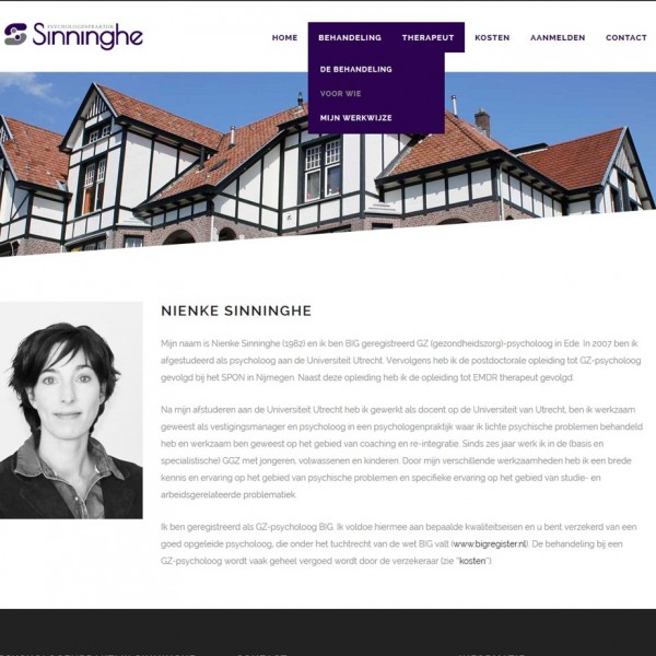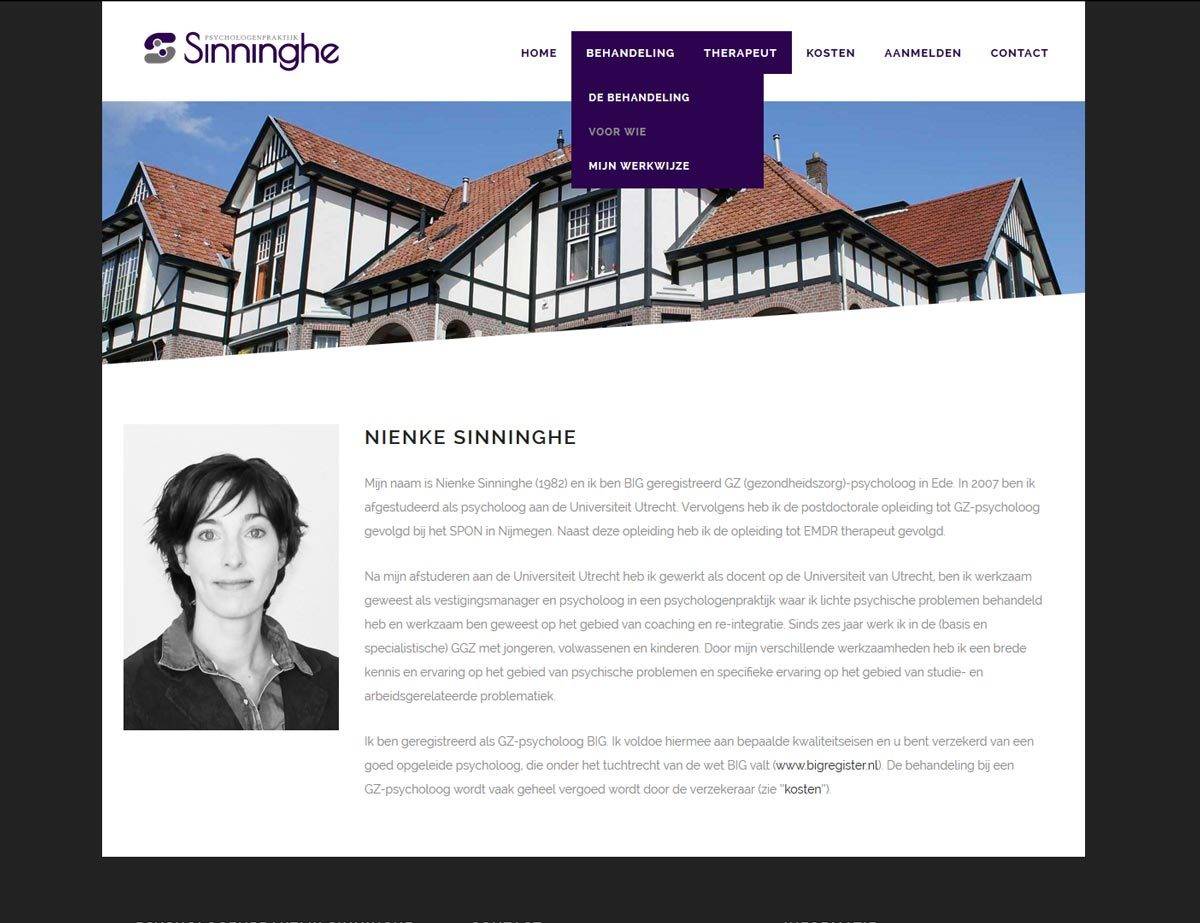 Psychologenpraktijk Sinninghe biedt kortdurende hulp aan adolescenten en volwassenen vanaf 18 jaar met psychische klachten. Wij hebben voor Nienke Sinninghe een website ontworpen die aansluit op haar huisstijl.