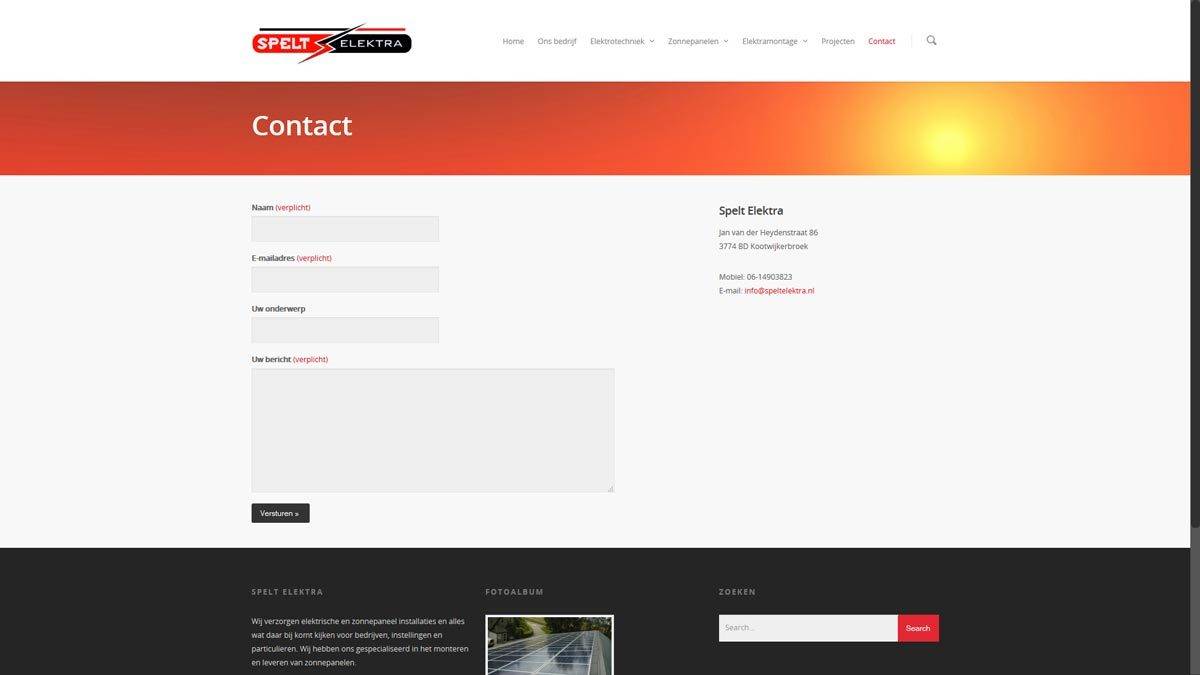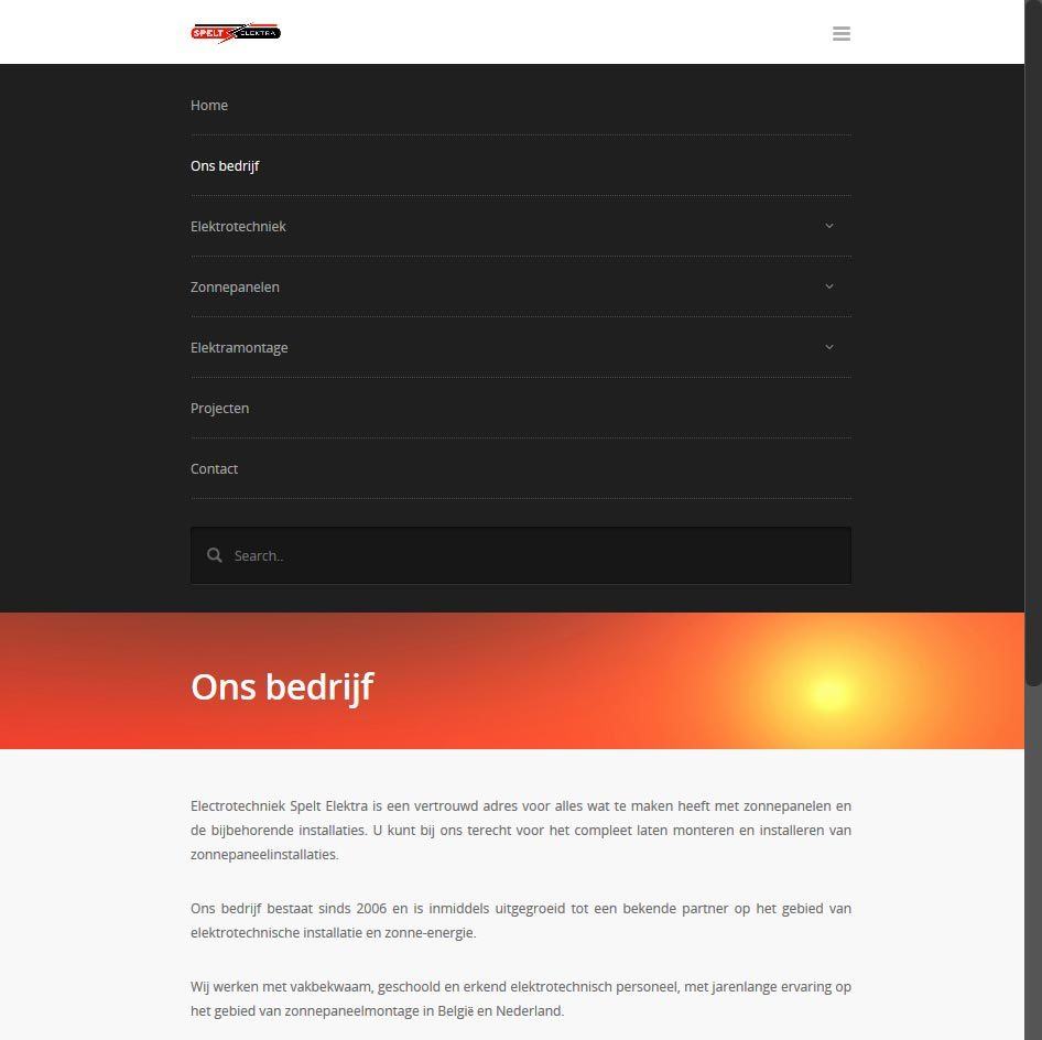 Electrotechniek Spelt Elektra uit Kootwijkerbroek verzorgt elektrische en zonnepaneel-installaties en alles wat daar bij komt kijken voor bedrijven, instellingen en particulieren. Zij hebben zich gespecialiseerd in het monteren en leveren van zonnepanelen. De oude website voldeed niet langer, dus hebben we op basis van WordPress een nieuwe website ontwikkeld.