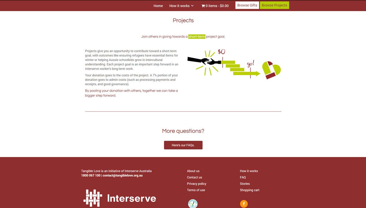 Tangible Love is alweer het derde project dat we voor Interserve Australia hebben uitgevoerd. In samenwerking met hun grafisch ontwerpster hebben we een frisse website gebouwd waar veel ruimte is voor beeld. Tangible Love is een website waar immateriële cadeaus gekocht kunnen worden. De opbrengst komt ten goede van de projecten van Interserve Australia.