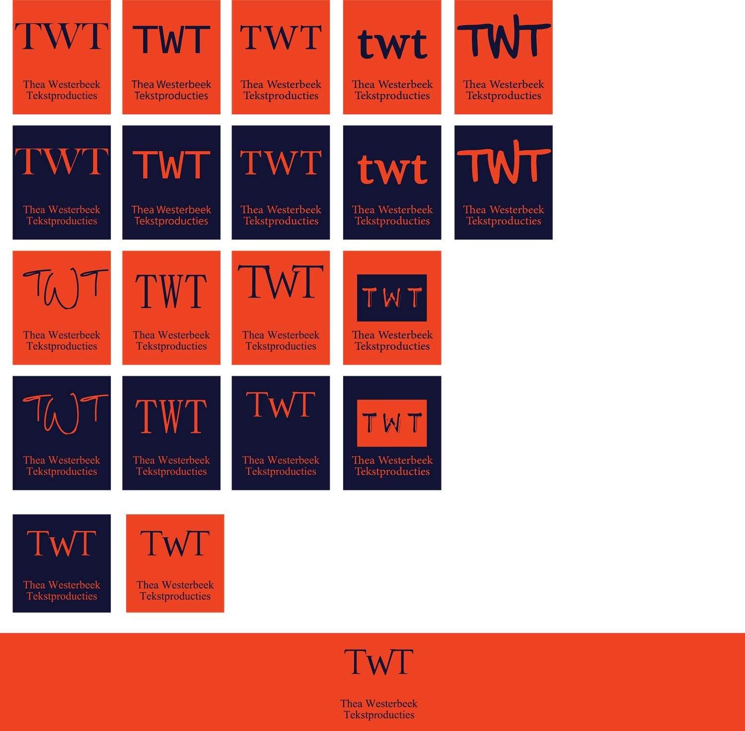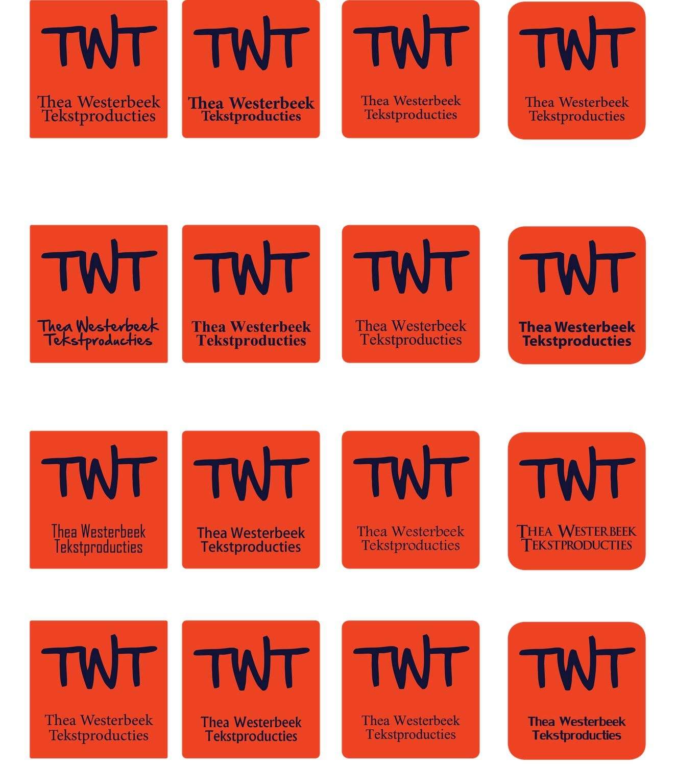 Naast haar voorstel om de kleuren oranjerood en donkerblauw te gebruiken, vroeg ze me op het logo simpel te houden. De afkorting ‘TWT’ met daaronder de volledige naam van haar bedrijf was voldoende. Met dit uitgangspunt ben ik aan de slag gegaan. Na de eerste conceptronde werd een lettertype voor de afkorting ‘TWT’ gekozen en daarnaast werd de vierkante vorm boven de rechthoekige vorm geprefereerd. Deze moest dan wel afgeronde hoeken hebben. Beide conceptrondes staan hiernaast.