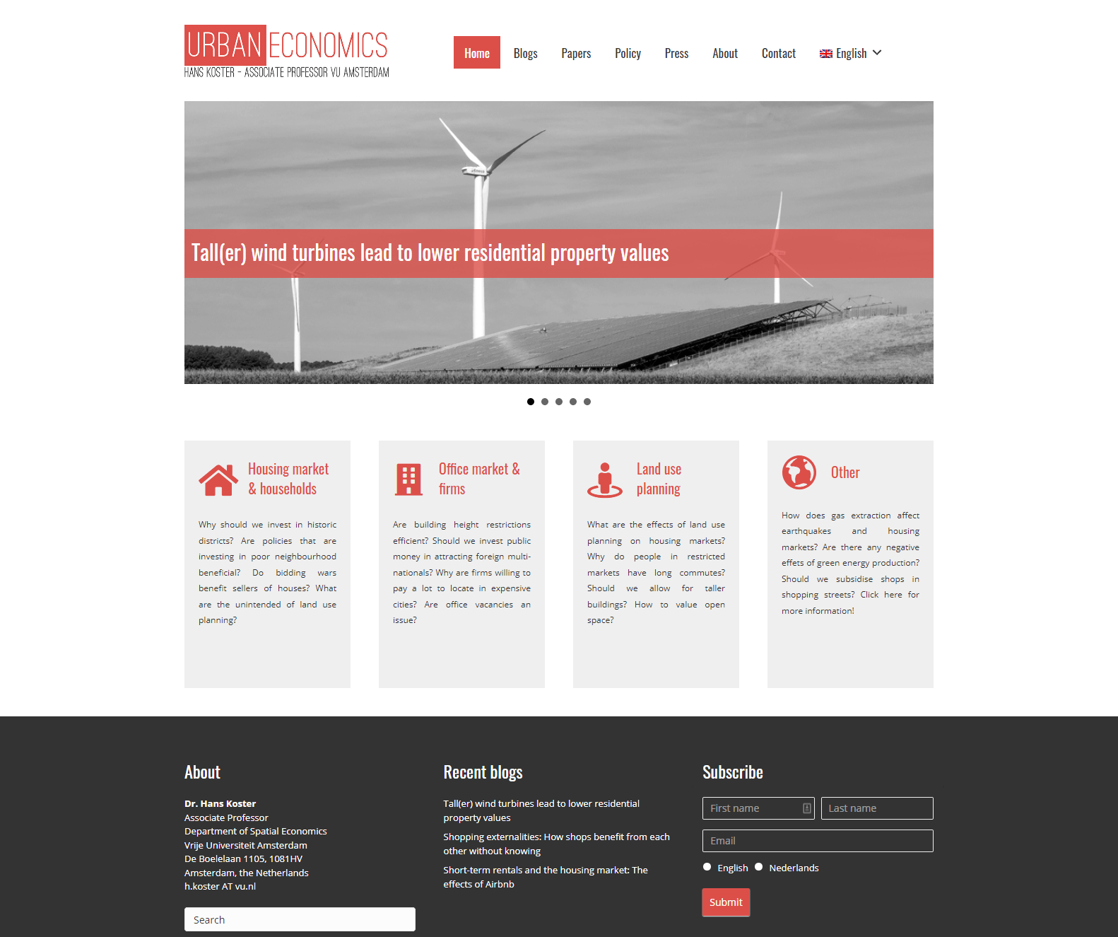 Hans Koster (25) is an assistant professor at the Department of Spatial Economics, VU University Amsterdam. Hans’s research concerns the economic analysis of cities, regions and the environment. Urban economists are interested in questions as diverse as why people flock to cities, how people and firms choose their location and how we can explain the current crisis in the housing market.