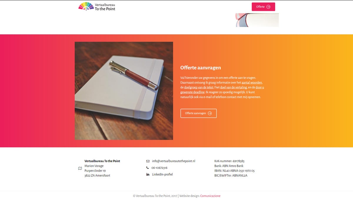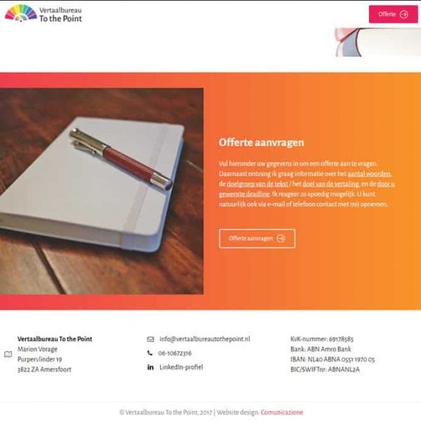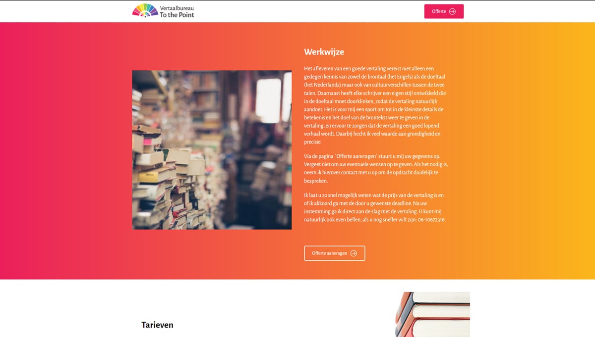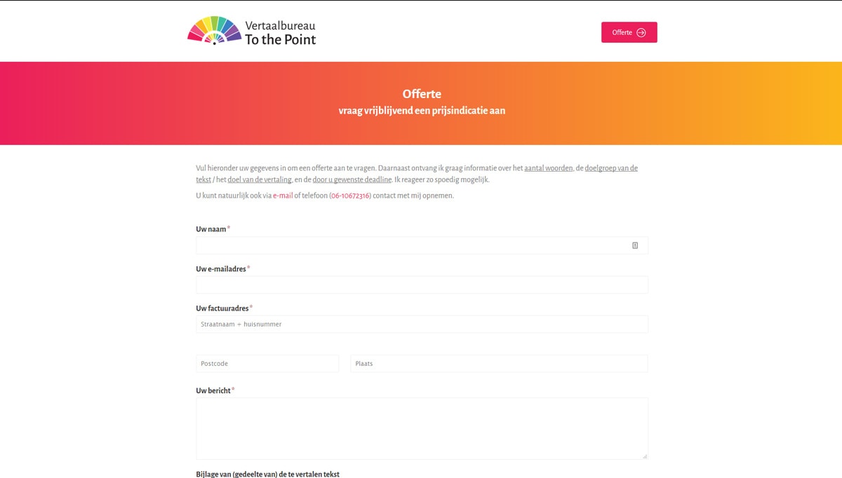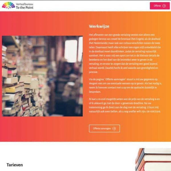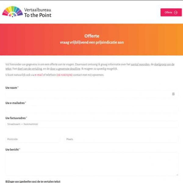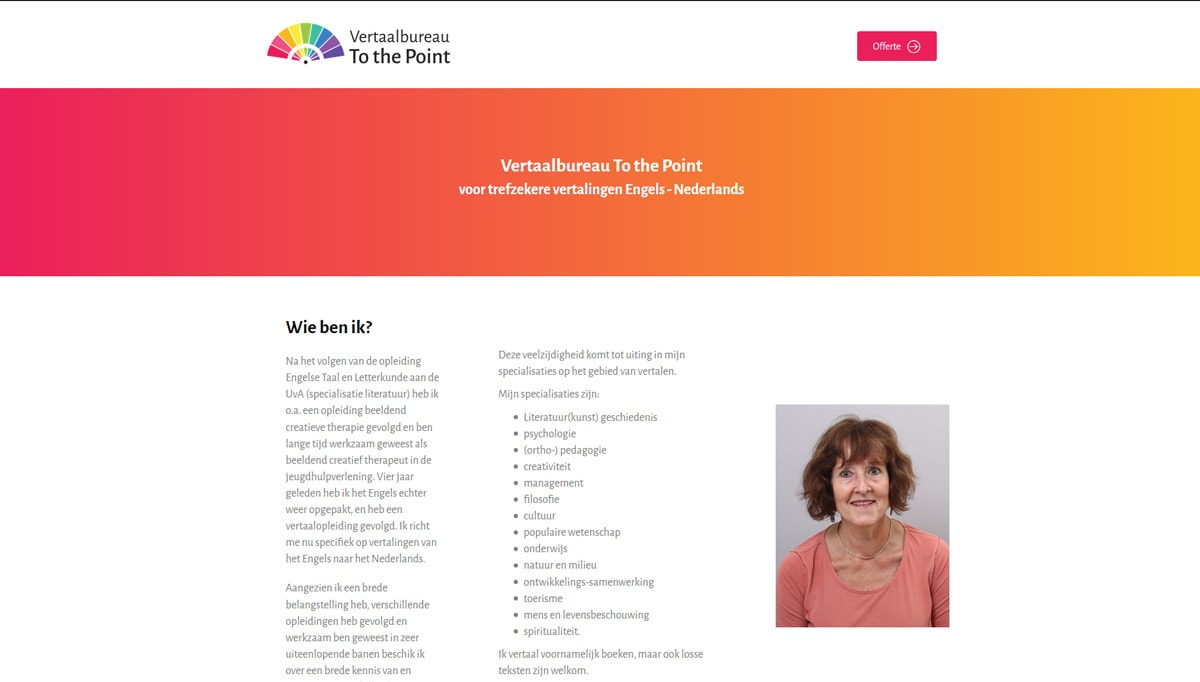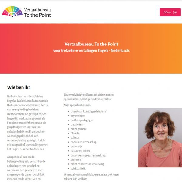 Voor Vertaalbureau To the Point hebben we een simpel logo en website ontworpen. De kleuren van de waaier hebben we terug laten komen in de website, waardoor het een kleurrijk geheel is geworden.